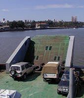 The ferry over the ‘Baia do Espirito Santo’ (Also called Maputo Bay) to Catembe was our first stop (obstacle?) next morning and after that the Maputo Elephant Reserve, commonly referred to hereabouts as just ‘Reserva’. However, as we feared that it’s presence would reduce our ‘departure angle’ too much, turning us into something of a plough, first we had to remove the tow-bar. Anyway, I did not want to tow a boat through marshland if we could pick it up later.