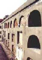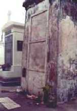 The "oven vaults" create the front wall of the cemetery. More than 10 feet long, corpses must decay for a year and a day before the skeletal remains are pushed back to make room for more. In some of the elaborate family tombs, the remains are pushed down into the foundation. The wall vaults are often leased to those corpses who do not yet have a space available in the family tomb.