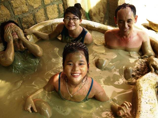 Prices are very reasonable and depend on how many people share a tub. Vietnamese love to do everything in large groups (an 8-person tub works out to just over $8USD per person for the whole day, but not recommended for the squeamish. Slick mud + a smooth tub = lots of sloshing around, so count on rubbing up against whoever’s in your tub, which may or may not be a good thing. Consider yourself warned.).