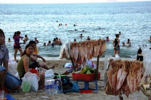 Lots of Vietnamese don’t know how to swim, so parents towing kids clad in bright orange life vests is a common sight. You might also try some of the dry, chewy roasted squid dipped in chili sauce (just be prepared for a sore jaw in the morning…), or perhaps a freshly cut mango or pineapple. While the beach gets crowded at these times, you can always find a stretch of sand to people watch and just take in the family-fun vibes.