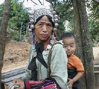 An Akha tribe woman and her baby. I asked if I could take her picture, then showed it to her on the digital camera. She was completely nonplussed – and was more interested in making a sale.