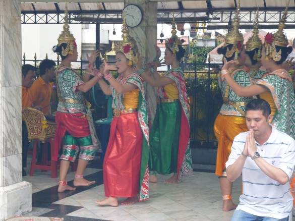 After lunch it’s time to take in some traditional Thai dancing. Seeing the authentic thing, rather than the many packaged shows put on for tourists, shouldn’t be missed. Just a few blocks south at the Erawan Shrine, located incongruously at the busy intersection of Ratchadamri and Ratchaprasong Roads in the midst of upscale malls and offices, live musicians and elaborately costumed dancers are on call. Erawan Shrine became popular after it was reputed to have protective powers, and locals drop by daily for prayers and to commission dances. The numbers are impromptu and the petitioner gets to sit on the pillow at the dancing platform and pray while his or her dance is performed. This is the real, local insight into Thai dancing. (Cost: Free)