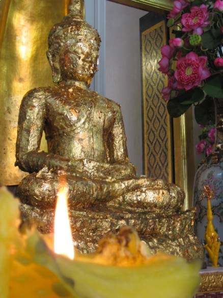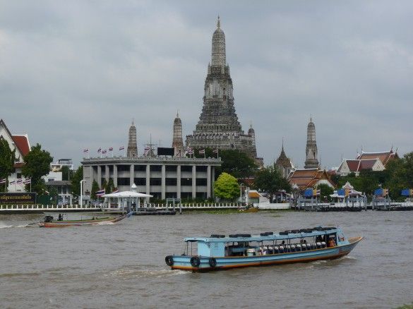Take the public ferry directly across the river to visit Wat Arun (4 baht), but before you board take advantage of the photo opportunity from the opposite bank. This “Temple of Dawn” was built in a distinctly different style, as the first building of Thailand’s new capital after the sacking of Ayutthaya. Much smaller in scope than Wat Pho, it is impressive for its imposing stone structure adorned with mosaics, and the steep steps that let you climb about halfway up. An enchanting surprise is the collection of golden bells that dangle from the edges of the spires and cast a gentle melody onto the breeze. (Cost: 50 baht – $1.60)