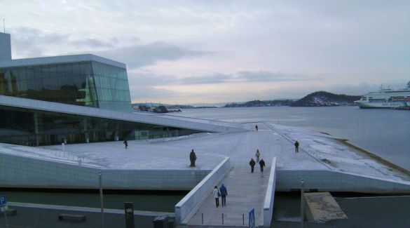 The statue of a late diva, Kirsten Flagstad, turns its back on you, she looks out at Bjorvika, part of the Oslo Fjord, from where the Opera preferably should be approached. The large roads on the Opera’s back are waiting to be moved underground. A guided tour is most rewarding, at least with Berit, a retired member of the Opera Choir. The opera is a prestige project, the popularity of which appears gradually increasing from “Far too expensive!” to “We’ve got one too!”