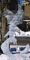 This year, the Australians created a pair of 15-foot boxing kangaroos, an enormous model of the famous Sydney opera house, a koala in a tree, giant boomerangs, and more. Across the street a “crystal garden” came alive with dozens of gorgeous 6 to 10 foot ice sculptures on a wide variety of themes of the artists’ choice.