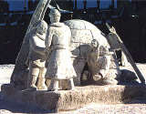 In honour of their centennial year, the central theme in 2001 was Australia. The friendly “Aussies” provided a film festival, chamber orchestra, aboriginal dance, music and storytelling, and art and photo exhibits. They also created the sculptures which are the festival’s main focal point.