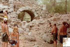 We took off from Finike and found a beautiful cove with pine trees covering the hills. We went ashore to have a quick nine-hole game of frisbee golf. The shore was made of perfectly round stones of every color imaginable. We returned to the boat and had lunch and took off for Olympus, birthplace of Hercules, and one of the most unusual settings for ruins that we have seen. A long round pebbled beach greets you as you pull in the cove. The water temperature is slightly cooler here because of a fresh water river that flows from Olympus to the sea. We swam to shore and investigated the ruins in the shade of pines, oaks and an unusual tree that had no bark. Small foot paths lead through a dense forest filled with ruins of the Roman amphitheater, basilica, bath house and necropolis, and the medieval castle that can be seen off the left side of the cove from the yacht.