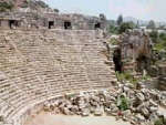 We planned a short excursion to Myra, a 20-minute drive, where the Lycian tombs are the only remnants of the once great city of 5th Century BC. Today there is an amphitheater from 400 AD where the Gladiators fought. It is in good condition and you can see the covered passageway and storage rooms where vendors sold their wares.
