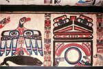 HuupuKwanum is a name meaning a chief’s storage box in which he keeps all inherited rights – names, dances, masks and privileges. Examples of these are shown at the exhibit in such objects as family curtains and crests that depict in visual images the inherited rights of the chief’s family, much as details in a family Bible were once kept in our culture. The Frank Family Curtain, a spectacular decorated 24-foot (7.5 metre) cotton ceremonial piece, was purchased from the Andy Warhol collection.