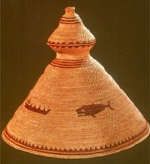 Baskets of different shapes and sizes, decorated with colorful designs, play a modern role in the cultural pride of the Nuu-chah-nulth. This is not art to be put on display as we think of art. But rather as Ki-ke-in (Ron Hamilton) says, “I think of what I do, and what my ancestors did, as making cultural things, full of meaning and usefulness and power.”