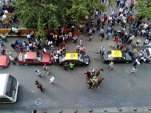 A couple of police officers on horses guard the entrance to the metro station, and watch the people come and go. When they get bored they take the horses for a walk around the plaza. Tourists and locals pose to have their pictures taken with the men on horseback. The Mapucha statue is another photo-opportunity location. Getting the mounted police and the statue in a photo is a premium shot.