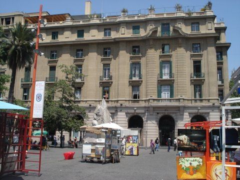 Official ceremonies and protest marches are all held at Plaza de Armas. The president of the country making an announcement will arrive with his entourage for the photo opportunities of the plaza – but he doesn’t stick around to meet the masses. Or a visiting cardinal going to the cathedral will show up at this historic cathedral, complete with police guard, a brass band and banners. All protests, be they in support of the Mapucha hunger strikers or the pharmacy workers who want to draw attention to their plight, must go through the plaza with drums and horns and followers shaking their fists in the air. The press photographers generally gather in the south-west corner, to frame the plaza as the backdrop.