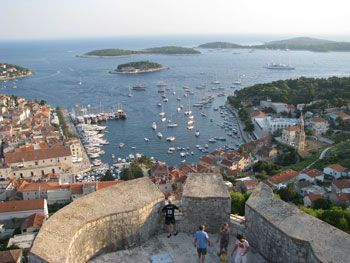 Split’s harbour is a hive of activity with boats heading here, there and everywhere. Specifically from our point of view there is a regular speedy catamaran to Hvar, a small town on the island of the same name not far off the coast. The catamaran crew proceeded to make everyone dump their bags up at the front of the boat which seemed a reasonable plan at first, until it came to collecting the bags again on arrival in Hvar which turned the front of the boat into a severe bottleneck, all the while with the crew helpfully suggesting that we should exit the boat at the back as quickly as possible! Not without my bag, mate…
