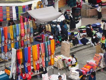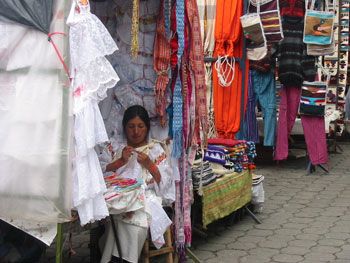 Otavalo is an ordinary South American town with an extraordinary history. The native Otavaleños have managed to carry their people and their traditions through the conquests of both the Incas and the Spanish. Part of the credit for their endurance goes to the trade of the people: textiles. Using both traditional backstrap looms (a slowly dying art) and upright looms, the Otavaleños create beautiful, hand-woven goods ranging from sweaters to rugs, and from small-scale wall hangings to giant blankets. And all of these are for sale in the Poncho Plaza, the heart of Otavalo.