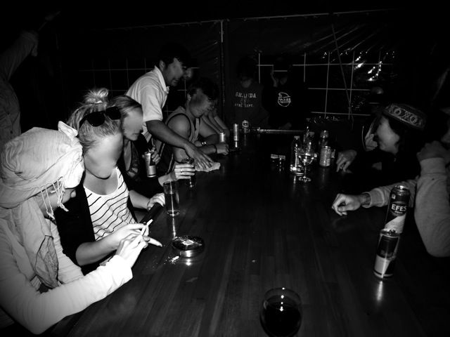 Afterwards I went down to pour myself another raki and found the bottle empty. Nearby, Jerhat and Captain Ali were drinking the last of it. I called them bastards and stumbled back upstairs to join the Australians, focusing my attention on the girls. There were six in total and only two seemed spoken for. I set to work trying to seduce the other four.