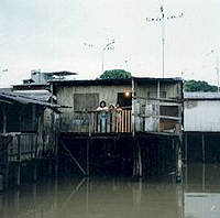 In the early morning we untied the raft from the dock and pushed off. George and his family waved as we floated away. We rowed between the network of houses built along the river and out to the river’s current. As soon as we reached the river, people in outboard driven canoes came up to us and asked what we were selling. They asked where we were going and could not believe our intentions.