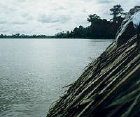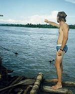 That night we borrowed a mosquito net from one of the villagers and slept in the raft. The evening was a special occasion. Pali and I had known each other for two years. We celebrated with a shot of rum. In the middle of the night I made the mistake of opening the mosquito net to go to the bathroom. The mosquitoes flew inside the net and once again the little critters had a tasty meal.