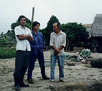 We rented a mosquito net from one of the villagers. We slept in one of their shelters, a thatch roofed structure built on poles about three feet above the ground. I finally had a good night’s sleep.