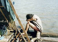We eventually saw a small village along the shoreline and paddled towards it. We reached the village, and a group of villagers came out to see the strangers. A villager threw us a line and we pulled up along the shore. One yelled, “Hey Mister”. The speaker of the village, I assumed, talked to us, asked where we were from and where we were going. I was so tired that I could barely speak. His Spanish was mixed with a strange accent so I had a hard time understanding him. Luckily, Pali managed the conversation. As we talked the villagers and ourselves swatted at the mosquitoes. I was surprised to see that not even the locals are immune to the pests. I wondered how anybody could live his or her life around such a constant annoyance.