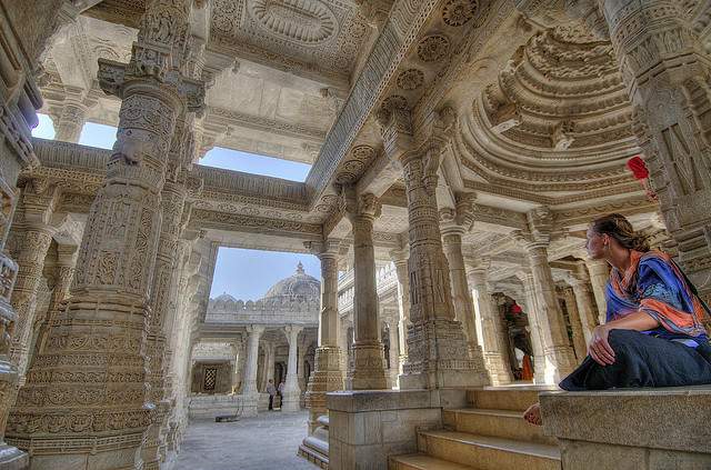Ranakpur Temple is a white marble wonder supported by a forest of 1,444 pillars all carved with exquisite designs. The unusual temple layout also includes five spires and a maze of 29 halls topped by 80 domes. The temple is said to be built in the form of a celestial vehicle, and Ranakpur is, without a doubt, heavenly. The stunning ceiling designs include an “om” symbol combined with a half moon, and a stylized figure with one head and five bodies that represents the need to control the five senses when entering the temple. Note that in deference to the Jain disdain for harming any creatures, no leather items are permitted in the temple.