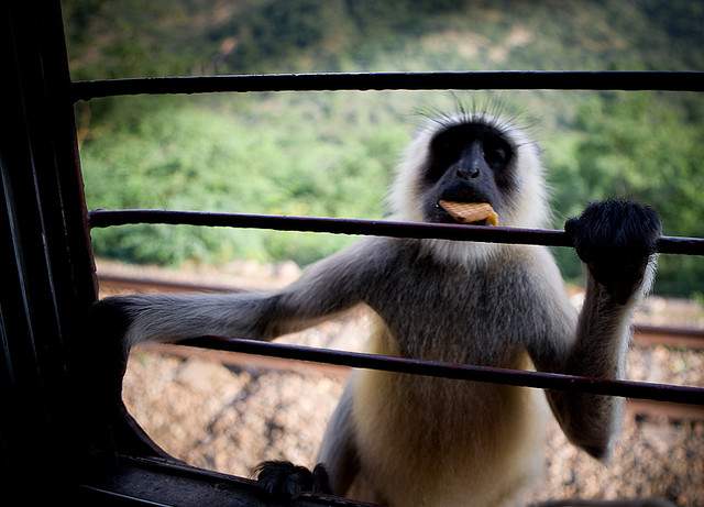 The train ride begins at Kambli Ghat station, the highest train station in the Aravalli Hills, and continues through the scenic Kambli Ghat Pass. This is not a tourist train, and one of the best reasons to take this excursion is to share the ride with the locals. The train passes through several tunnels (that were painstakingly carved by hand), and the children onboard laugh and scream each time the train is plunged into darkness. The train makes several stops for brake checks, and one regularly scheduled stop to feed the langur monkeys. These monkeys know exactly when to show up for the biscuits that all the passengers throw from the train, and the adjacent rails are crowded with hungry primates. All the train windows have bars, and when you see how aggressive the monkeys can be, you understand why.