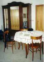 Antique armoir and lacy tablecloth in our Casa Giuditta room.