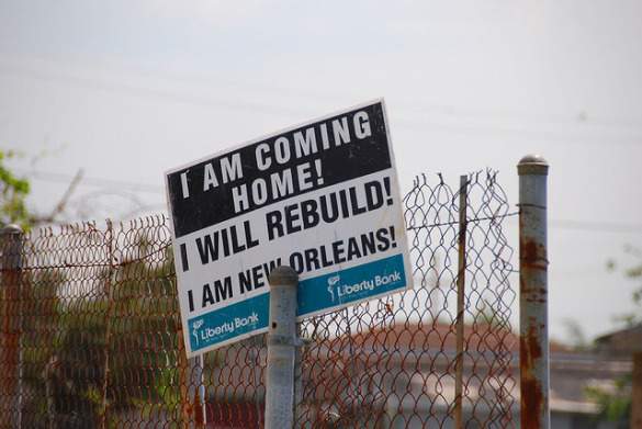In Gentilly, St. Bernard Parish, and the Lower Ninth Ward, homes squat gutted, abandoned, and lost next to proud, rebuilt houses and Brad Pitt’s “Make It Right” homes with solar panels on the roof. Everyone seems to be moving forward now – rebuilding, or tearing down, or both. And all the while celebrating being alive – even though the Army Corps of Engineers doesn’t anticipate completing Katrina-related levee repairs until next year.