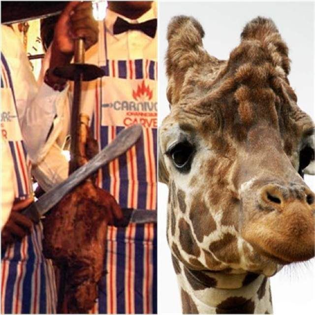 One of South Africa’s most famous restaurants, The Carnivore Restaurant, is located in the town of Muldersdrift just outside of Johannesberg, and it serves a large selection of South Africa’s bush meat. Obtaining giraffe meat from registered culling programs, The Carnivore Restaurant simply tenderizes and marinates the giraffe steaks and then roasts the steaks on Massai swords over an open flame. “Giraffee meat has a great deal of sinew,” says General Manager Allen Dixon. “It can be quite tough and chewy, however, it is very flavorful.”