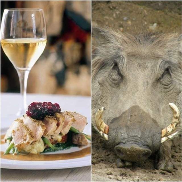 Ugly to look at, delicious to eat! Warthog has a similar flavor and texture to pork, and at the fine-dining Savoy Cabbage restaurant in Cape Town, Chef Peter Pankhurst serves a perfectly cooked Fennel-Dusted Warthog Loin with Bashed Neeps and Tatties, Onion Marmalade, and Sour Fig Syrup (just in case you’re wondering, “Neeps and Tatties” is a mash of turnip and potato) for $20. After being put into a brine for several days to relax it, my warthog was very tender, and the licorice-aroma of the fennel flower took me away to Tuscany, where wild boar and fennel flower are a common combination. Caroline Bagley, owner of Savoy Cabbage, says that the restaurant uses only free-range warthog, and, feeding on the natural food of the fields, it is hormone free. “The only difference is that the farms have no predators,” said Caroline. Except us, I suppose.
