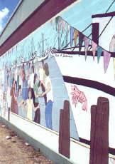 This mural in Delcambre depicts the town’s famous Shrimp Festival. Eating spicy seafood and dancing are often top priorities for Cajuns.