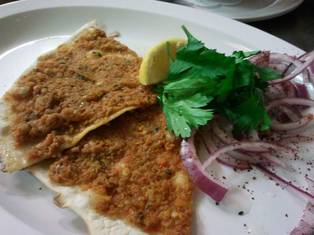 Lahmacun is Turkey’s twist on pizza. Pungently seasoned ground beef, lamb, or a combination of both is thinly spread on a light, chewy dough. You won’t find cheese, but you’ll find a bright mixture of parsley and red onion. Traditionally, you roll it up with your hands and finish with a squeeze of lemon, which completely changes the flavor and makes it uniquely Turkish.