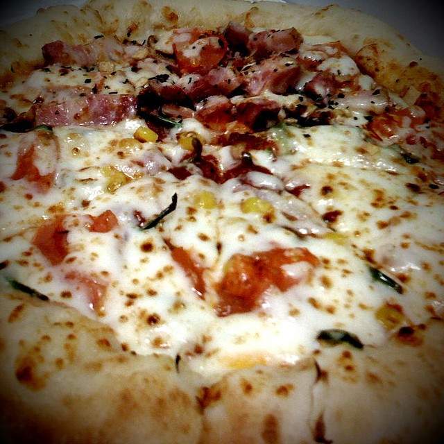 Russian pizza is heavily topped with seafood. Shredded tuna, mackerel, and salmon are just a few that you’ll find. As far as veggies go, onions are a common choice.