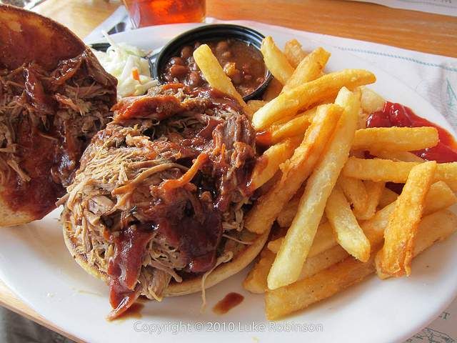While Texas is known for beef, the Carolinas are known for their love of the pig. The pork is slow cooked and becomes so tender it doesn’t take much effort to “pull” it apart. South Carolina is unique in that instead of a barbeque sauce like North Carolina, Kansas City and Texas, they have their Carolina Gold Sauce, a tangy blend of yellow mustard, vinegar and brown sugar.