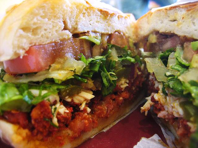 The Southwest region of the country combines southern charm with the flare and spice that the Mexican immigrants continue to bring. The Mexican sandwich, or torta, starts with a round shaped roll called a telera. Some common ingredients that fill the soft bread are steak, pork, breaded beef, milanesa or marinated chicken, usually topped with guacomole or avocado, tomato, lettuce and sour cream.