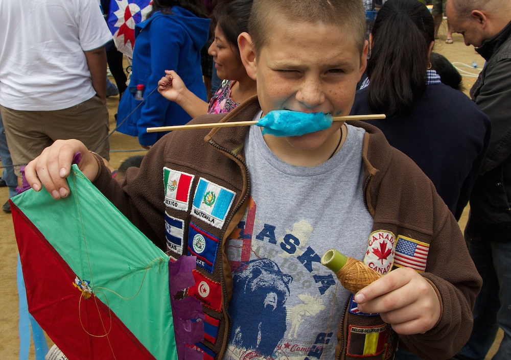 Once a year, this sleepy little Mayan pueblo explodes as thousands of visitors pour in to participate in the Feria de Barriletes Gigantes, which is celebrated by flying some of the biggest kites in the world, in honor of Dia de las Muertas. I don’t know how many people attend. Thousands. Thousands upon thousands. The entire soccer pitch is filled, shoulder to shoulder, with enthusiastic watchers, faces tipped skyward. The streets in the village below are a moving sea of people. The hillsides are peppered with picnic blankets and families relaxing, flying their kites.