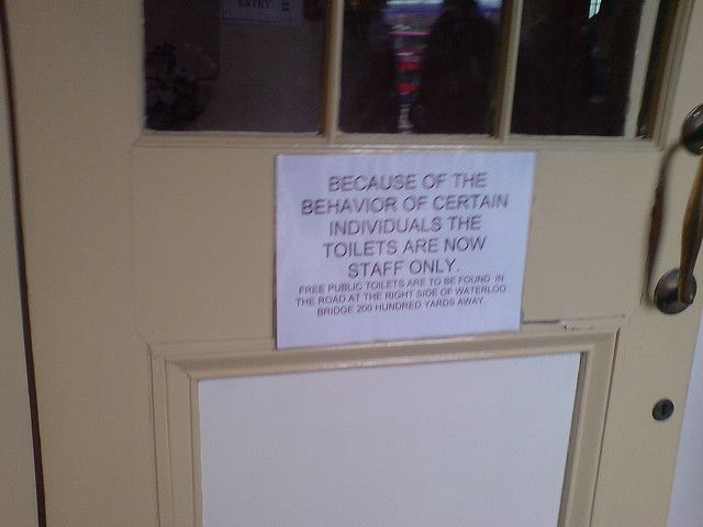 Train by Brett L. on Flickr, London by That_james on Flickr, Bush by CavinB on Flickr , Chinese public toilets by Rivard on Flickr , Japanese toilet instructions by lifewithkarma on Flickr