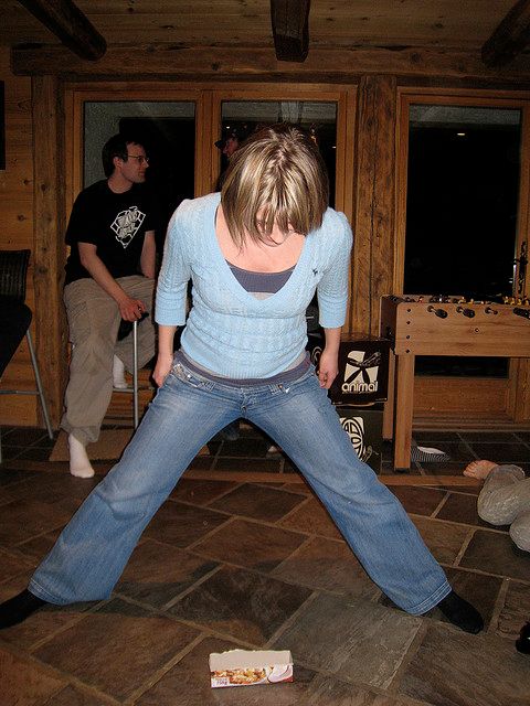 Take an empty cereal box and place it on the floor. In turn, each player must bend over and pick the box up with their teeth. Sounds easy? There is one extra rule: the only part of the body that can touch the floor while attempting to pick up the box is one or both soles of the feet. Every failed attempt or additional body part that touches the floor incurs a drinking penalty. People can try each round as many times as they want. Once everyone has picked up the box or the unsuccessful people have admitted defeat, an inch (couple of centimetres) should be cut or ripped away from the top of the box. The game continues until there is nothing more than the base of the box left. Then you’ll be hoping for a sticky tongue to help you get the cardboard off the floor.