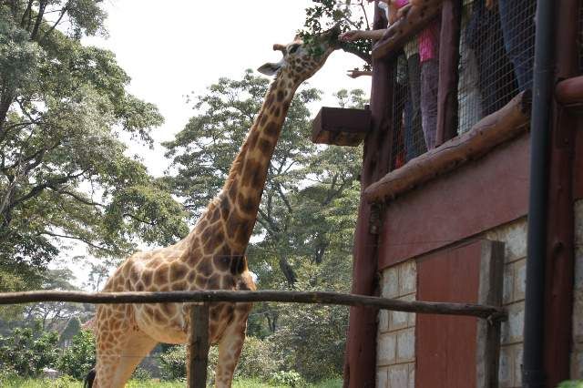 At the Giraffe Center in Karen, you can climb up the observation platform and feed the giraffes. If you would like to see those long eye-lashes up close, this is your place! The cost is $9 USD.