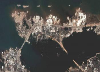 Within days, mass graves with tens of thousands of unidentified bodies filled up. A few miracle buildings were left standing, including a giant white mosque in Lhoknga, near Banda Aceh. The land was rearranged: where houses and palm trees once stood, there was nothing but water. A 2,600 tonne boat was carried five kilometres inland, where it still sits today. At least 30,000 people died in the capital of Banda Aceh alone. The city and surrounding countryside were completely and utterly destroyed.