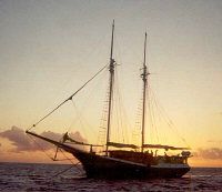 Neither of us has a diving ticket (e.g. PADI or SSI), but we really fancied a trip to the Great Barrier Reef itself and a few nights on board the boat. Many of the cheaper packages only take you round the fringing reef of the Whitsunday Islands themselves, and as the ‘party’ boats take 50-60 passengers you stay ashore each night. And so we headed to Reef Dive and the SV Romance: three days and nights sailing, 17 passengers in total, a 50/50 split of divers and snorkellers, and the chance to do a sample dive for those who’d never done it before – woohoo! An amazing and wonderful trip with loads of gorgeous fishies to gape at (gurgle gurgle), happy happy sailing and beautiful desert islands… mmm… One night I slept on deck to watch a fantastic Leonid meteor shower (ooh, fancy name) – huge bright lights of all colours streaking across the sky like the world was about to end. Overall thoughts: I could stay there for years.