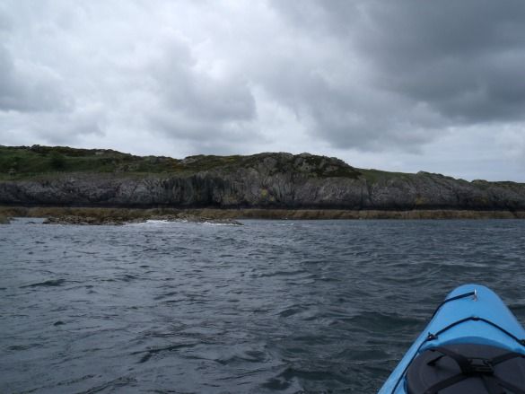 We used a Looksha 18.1 foot two-seater, that weighed some 92 pounds, to navigate on Liverpool Bay (part of the Irish Sea). Our starting point on a mostly cloudy day was Porth Elian Beach with the goal of reaching the harbour of the old copper mining port of Amlwch in an hour. The journey began from Port Elian in the midst of relative calmness from the more turbulent waters beyond, where wind speeds were gusting around 20 mph and also into our initial direction. While easily managed by more experienced sea kayakers going solo, I chose to paddle in that two-seater with someone experienced.