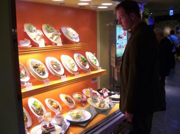 Plastic food displays are typical in the train station