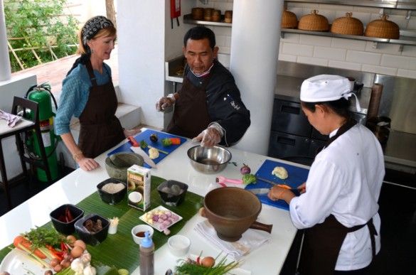 As part of the Culinary Experience offered by Hotel de la Paix, Chef Somroj and I then returned to the beautiful hotel facility to commence our cooking lessons and whip up four different fabulous recipes. “Most people have yet to discover Lao cooking,” Chef said.