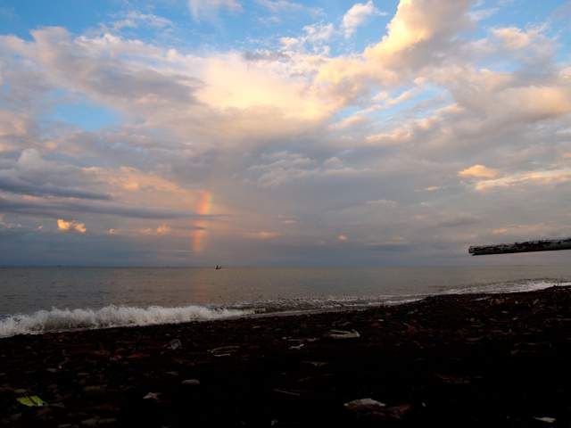 I finally relented, letting my feelings flow, and after a good release, I felt a lot better about my own limitations as a traveler, and what it takes to have a happy experience. I went outside to get some fresh air, and as if a sign, the storm from earlier in the afternoon had cleared and a beautiful rainbow appeared in the light of the setting sun.