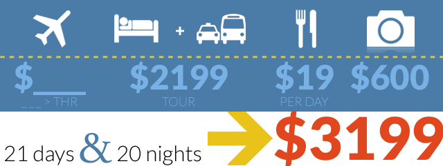 » Tours, including accommodation, transport and guide: $2199 pp for 14 days and $600 pp for 7 days
