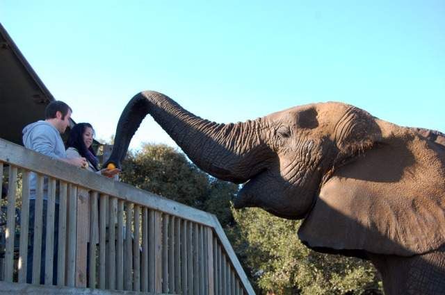 Feeding the elephants at Vision Quest Ranch in Salinas was one of the coolest experiences of the trip. I’ve been on a safari in South Africa, and honestly this can’t be compared to that (the animals at Vision Quest aren’t wild; most are rescues or are retired from the circus) but if a true safari isn’t an option for you, this is a pretty great alternative. You stay in safari tents built on stilts and spread around the grounds with the elephant play field as the focal point. If you can ignore the paved driveways and parked cars and just focus on the tall grass around the tents, and the elephants, ostriches and zebra roaming around, it’s a pretty cool experience. Especially when the trainers come around each night and bring animals to meet the guests. They also deliver breakfast each morning, bringing bagels and pastry for the guests, and fruit that the guests get to hand feed to one of the elephants.