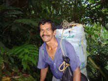 The next morning the guide tells us, in rapid Spanish, that those with a lot of gear should leave non essentials at the farmhouse to be picked up on the return. The climb is strenuous. We are ok, carrying one half full of a 30-litre rucksack between the two of us. We set off after a light breakfast, struggle up the steep, muddy red gash in the undergrowth that leads upward past the last of the farmed fields and into the gloomy primary forest.