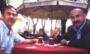 The two men seeking “romance” drink tea with Kartini in a tea garden, near the seabus pier in Kadikoy, Asian Istanbul.