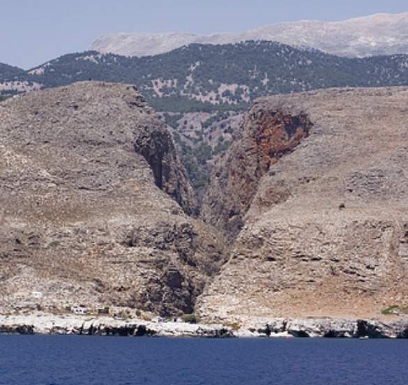 If you have even a bit of experience with nature walks, and little or no vertigo, hiking the Gorge of Aradena is an ideal alternative to the better-known Samaria Gorge and its almost 2,000 daily visitors. Begin your hike at the small beach of Marmara, which is an hour’s walk along the coast from the town of Loutro (about 80 kilometers – 1 ¾ hours – south of Chania on the island of Crete) and then head uphill – it is easier to walk up than down – towards the southern slopes of the White Mountains.