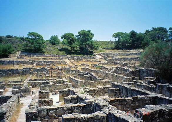After a 30 kilometer drive west from the city of Rhodes, on the island of Rhodes, including the final stretch up a switchback road on a tranquil, pine-filled mountain, you will arrive at the ancient Minoan ruins at Kameiros. Inhabited since 2000 B.C., Kameiros joined Lindos and Ialyssos in the 5th century B.C. to form the grand city-state of Rhodes. Kameiros, also known as the “Greek Pompeii,” was flattened by an earthquake in 226 B.C. and was ultimately abandoned in 142 A.D. after being destroyed by another. However, the town’s foundations were well-preserved under the debris from the second quake, protecting it from looters.